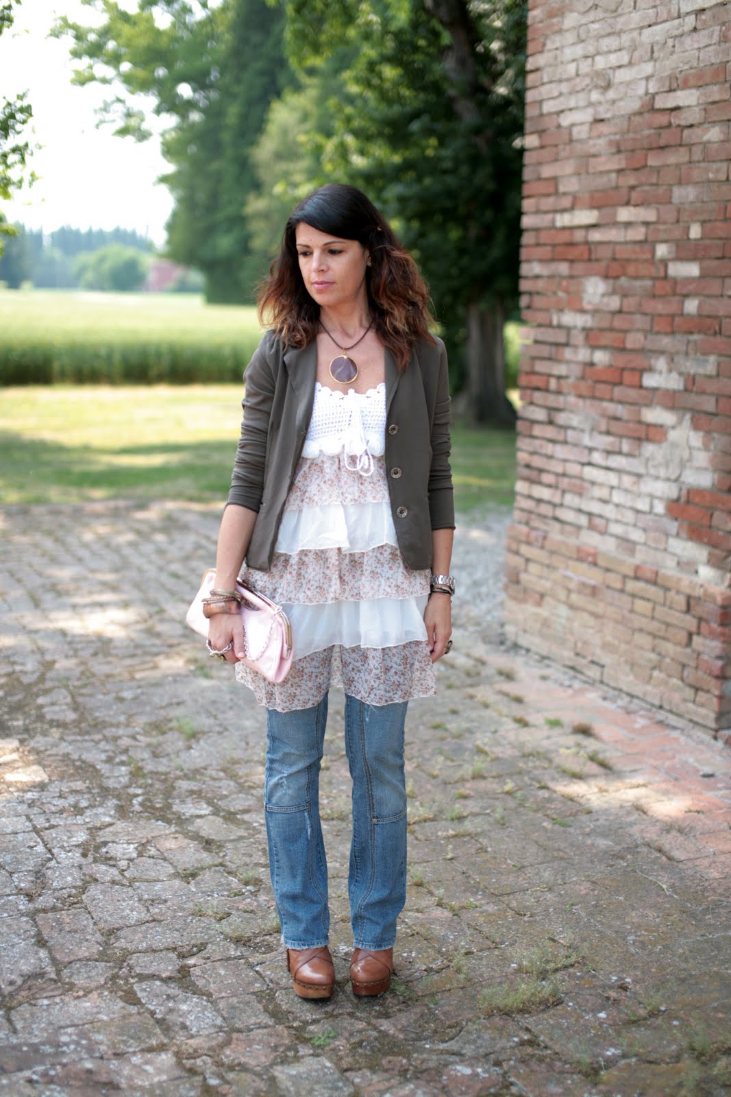 Today is a beautiful day: the sun is so hot that you just want to lie down on a fresh green lawn and catch all the rays. Being in a very positive mood, I decided to wear one of the top of my new summer collection (it will be on sale next week on my Etsy shop). To pair it has been very simple: jersey blazer, skinny jeans and clogs.